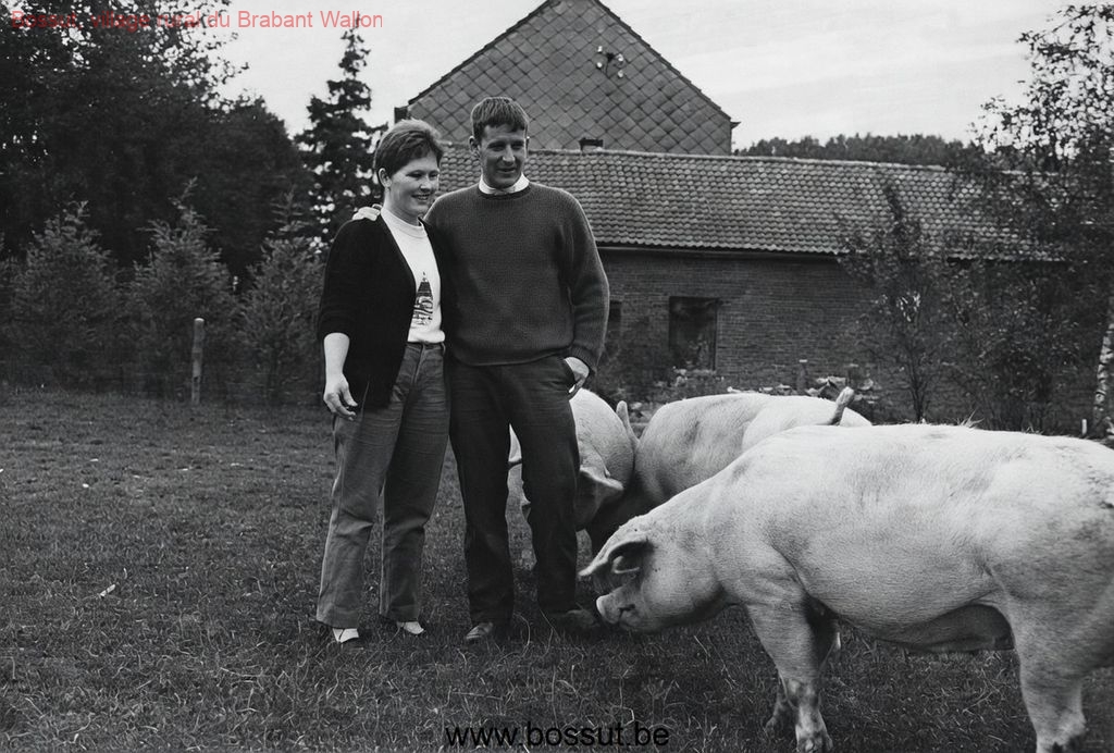 Photo 2 : Eddy Gillis et son épouse Monique Delescaille, entourés de leurs cochons de la race « Landrace »