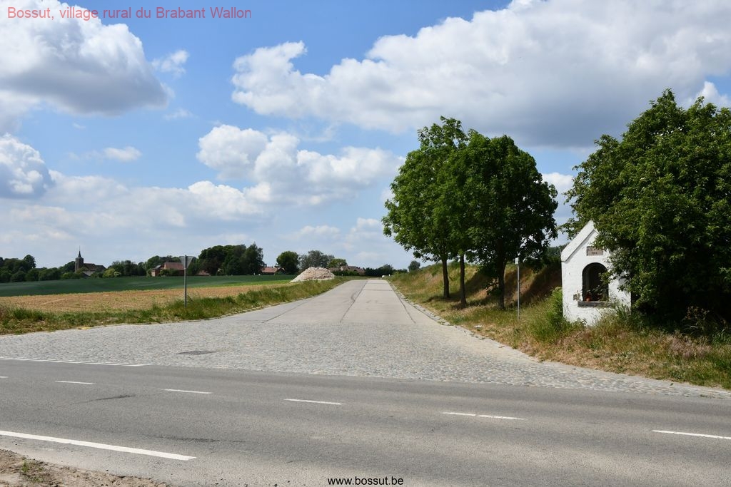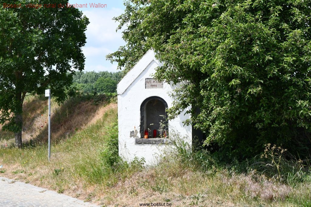 Elle porte la dédicace gravée « AVE MARIA 1864 » au-dessus de sa niche, marquant précisément son année d’érection. C’est une petite chapelle routière construite en briques enduites. Elle présente une niche en plein cintre destinée à accueillir une statuette de la Vierge. Elle se dresse de manière isolée en bordure de champs. Elle est officiellement répertoriée à l’Inventaire du patrimoine culturel immobilier de la Wallonie (fiche n° 25037-INV-0151-01) en tant que monument d’intérêt local.